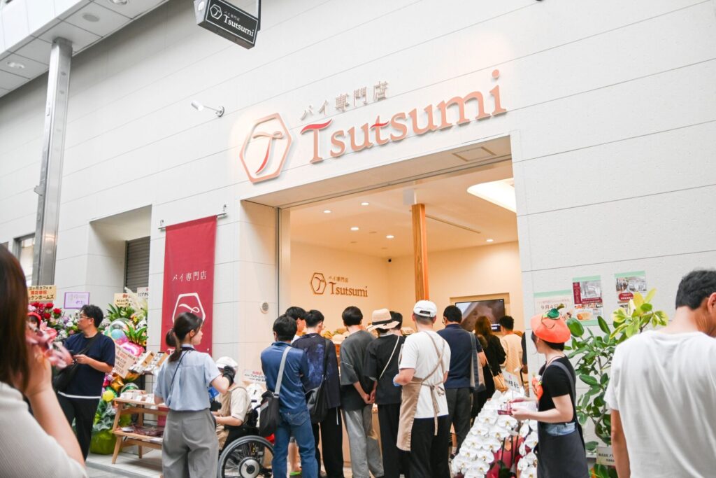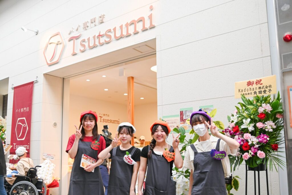 パイ専門店Tsutsumi道後店オープン初日に、学生が共同開発商品を店頭でPR