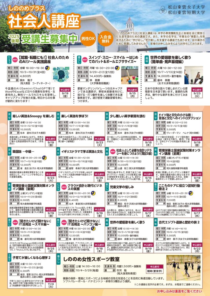 2025年度後期「しののめプラス」(社会人講座)受講生 募集開始!