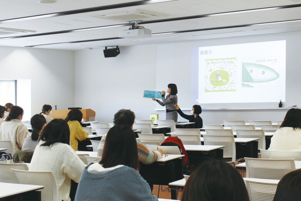 本講座は2020年度に県内で初めて本学が開講して以来、延べ155名が修了しており、愛媛県内で同講座を開講しているのは現在も本学のみです。学生に限らず、科目等履修生として社会人にも学びの場を提供しており(履修要件あり)、幅広い層が絵本を通じた子ども支援の専門性を身につけています。