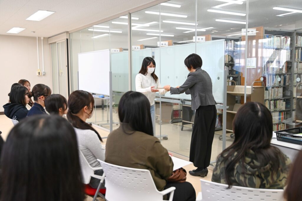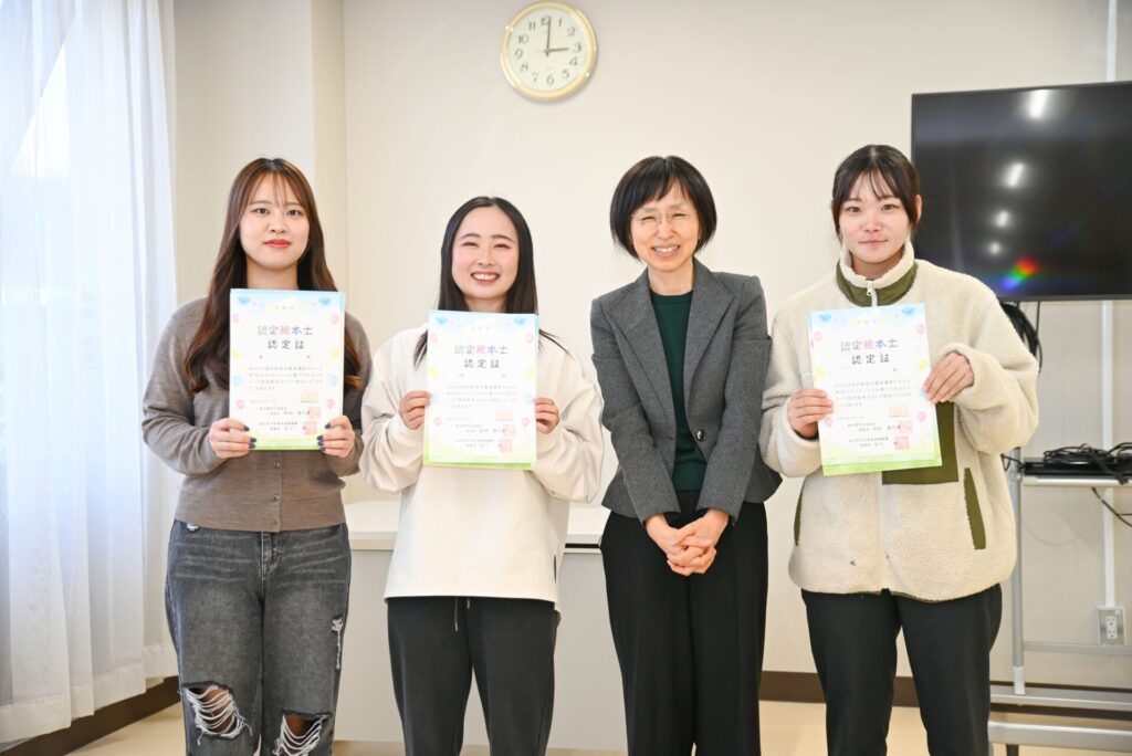 認定絵本士養成講座を受講した学生27名(科目等履修生2名を含む)が、国立青少年教育振興機構より認定絵本士資格を授与され、11月6日に授与式を開催しました。