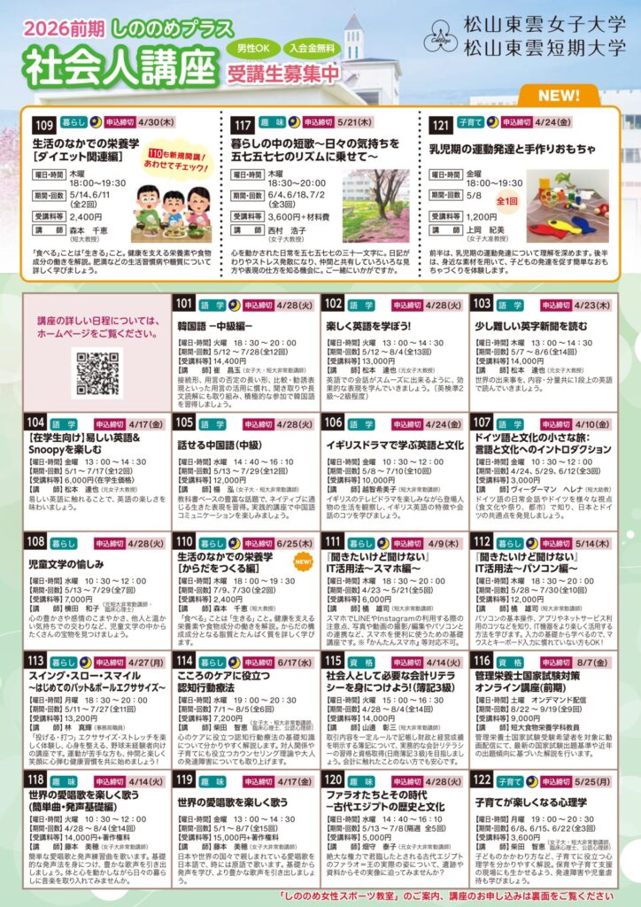 2026年度前期「しののめプラス」(社会人講座)受講生 募集開始!