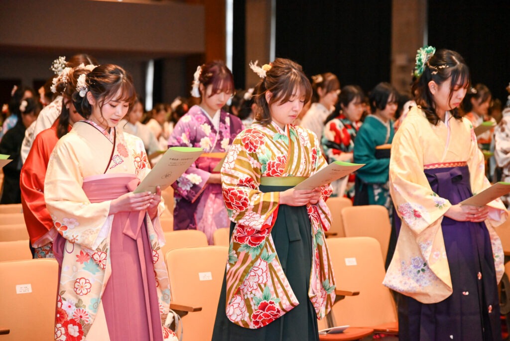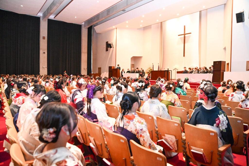 3月13日(金)、本学チャペルにて第31回松山東雲女子大学、第61回松山東雲短期大学の2025年度卒業証書・学位記授与式を挙行しました。