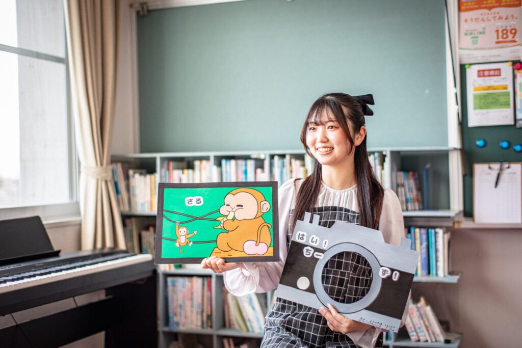 女子大・子ども専攻ならではの「子どもキャラバン」の活動成果を紹介します。あわせて、「自己発揮が叶うゆるやかな4年間」をテーマに、取得した資格や没頭したサークル活動などについても、写真や映像を交えながら学びの軌跡をたどります。